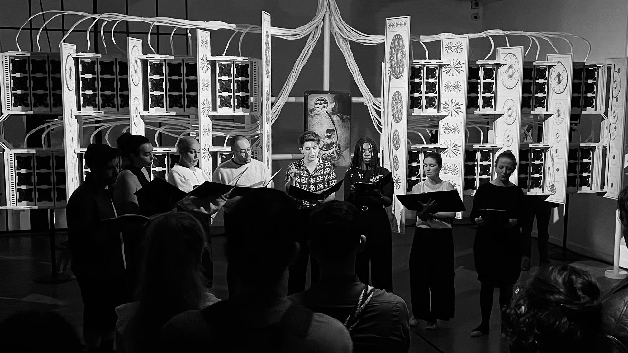 The piece and how it was proposed to the audience commented on “collaboration with AI being, in an abstract sense, collaborating with the human archive and yourself,” they explain. “And as our emphasis on choirs shows, AI is no replacement for being in the room with other people. ... Ultimately, contributing to an alien public intelligence is a leap of faith.”