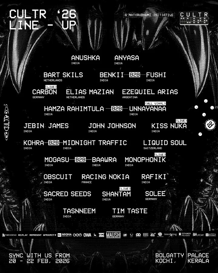 Set against the waterfront grounds of Bolgatty Palace in Kochi, Kappa CULTR returns with a sharper focus on its sonic identity and immersive programming. Edition III brings together 27 electronic artists spanning driving techno, melodic house, psytrance and live hybrid sets, featuring international names like Bart Skils, Elias Mazian, Ezequiel Arias, Liquid Soul, Solee, and Racing Nokia alongside Indian acts such as Anushka, Anyasa, Kohra, Hamza Rahimtula, and Midnight Traffic. The Kappa × Mausi Stage explores the dialogue between underground techno and regional influences, while the CULTR Stage spotlights global headliners and emerging electronic talent through high-spec production and extended sets. Beyond the dancefloor, the schedule moves from sunrise yoga and ambient sessions to late-night peak-time performances, complemented by interactive art installations, culinary pop-ups, and fashion showcases that frame the music within a broader, sensory-led festival environment.