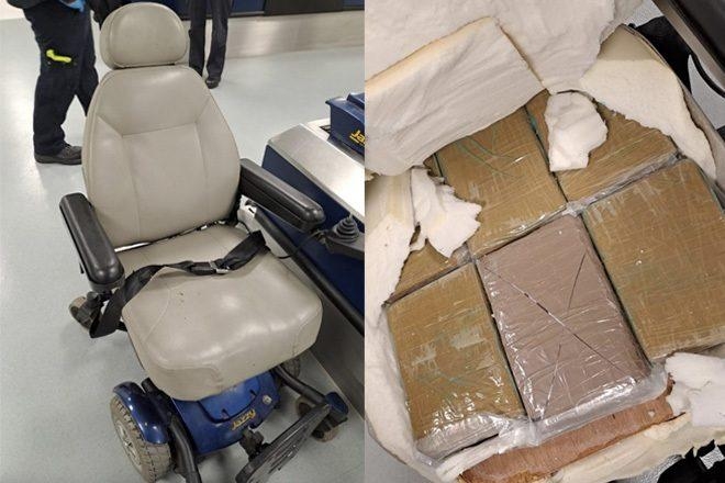 Global News £1 million worth of cocaine discovered in electric wheelchair at Manchester Airport Packages weighing 12kg were stashed inside the seat and backrest of the wheelchair