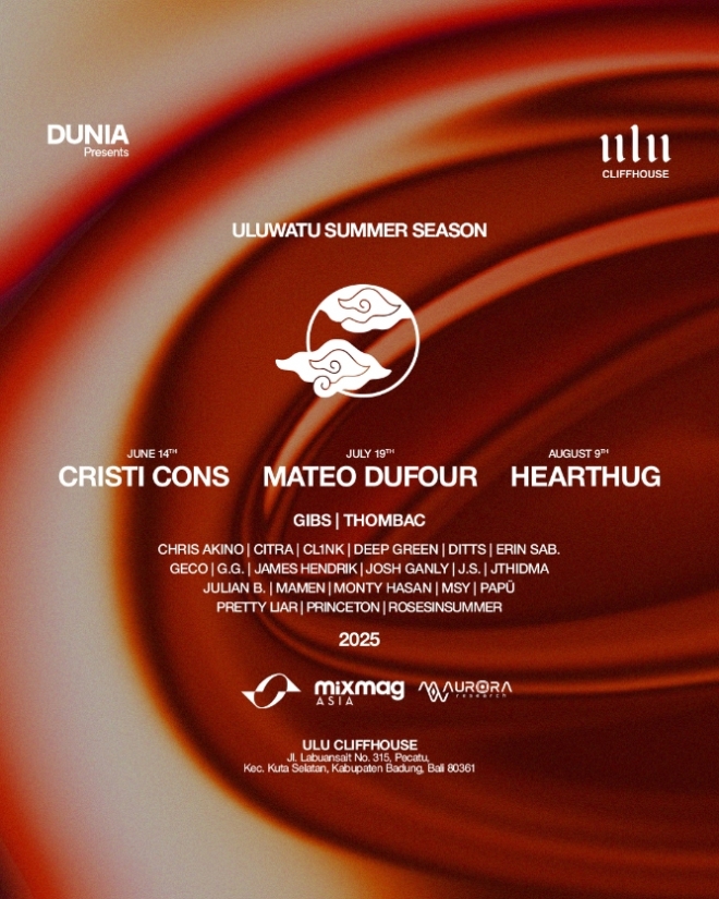 Bali-based event organiser and record label DUNIA has announced a three-month takeover at Ulu Cliffhouse, featuring headliners Cristi Cons, Mateo Dufour and Hearthug.