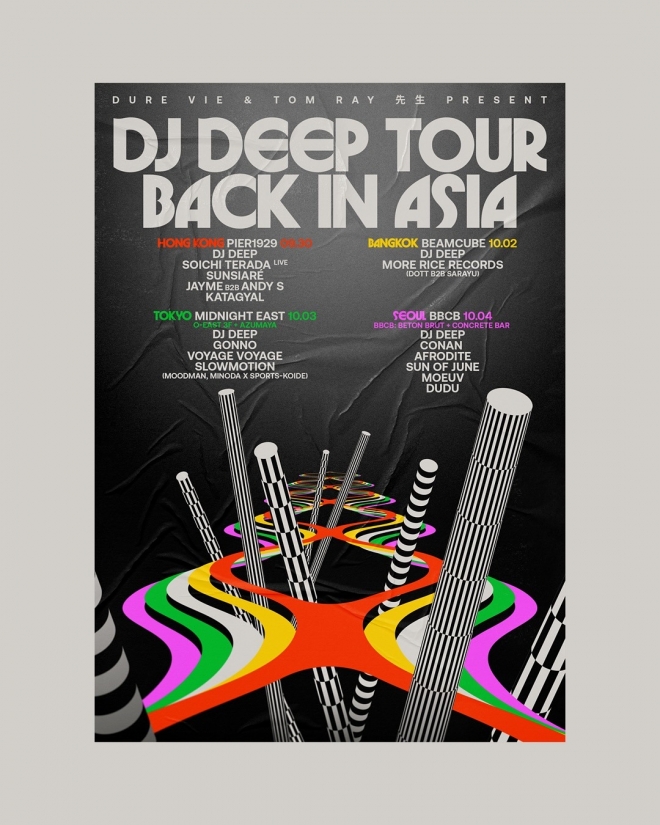 DJ Deep returns to Asia for a four-date tour out together by European media-slash-events organiser Dure Vie and Hong Kong-based artist booking agency Tom Ray 先生, stopping in Hong Kong, Bangkok, Tokyo, and Seoul.
