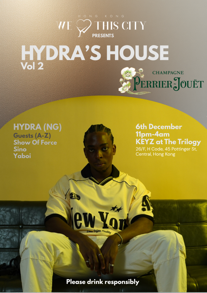 WeLoveThisCity will host Hydra’s House Vol. 2 at The Trilogy, once again featuring the project’s signature blend of live instrumentals and global house music. The main set will be performed by Hydra (NG), with supporting sets by Show Of Force, Sino, and Yaboi.