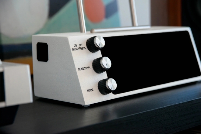 The Smart Now Playing Stand by PETRU doesn’t only hold a vinyl record; it also reacts to whatever audio is playing in the room.