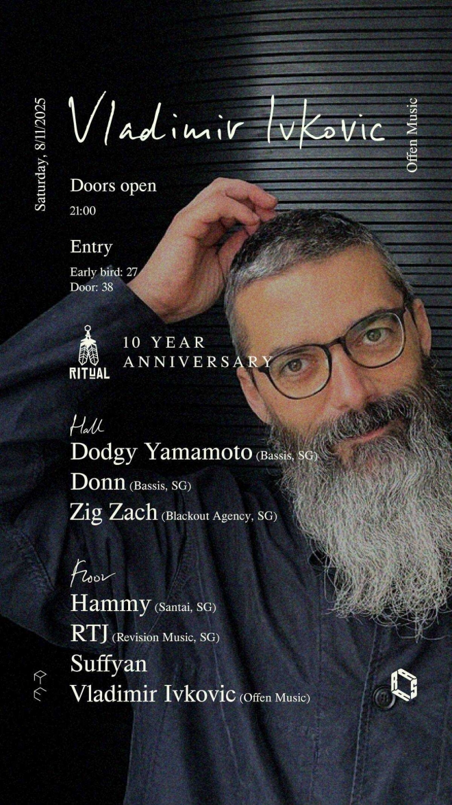Now, marking a decade of pushing culture forward, RITUAL honours that spirit once again, presenting the Singapore debut of legendary selector Vladimir Ivkovic.