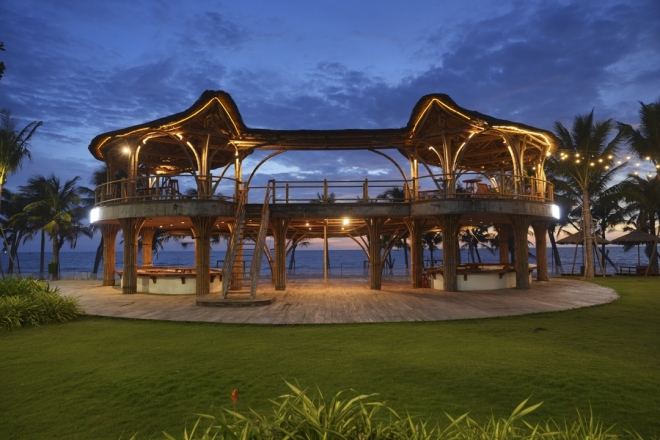 The new venue is a breezy, open-air spot just five minutes from the airport and under fifteen from town, which seems purpose-built for a New Year gathering: two seaside stages, bamboo and clean wood textures, wide platforms for dancing, and plenty of corners to cool off.