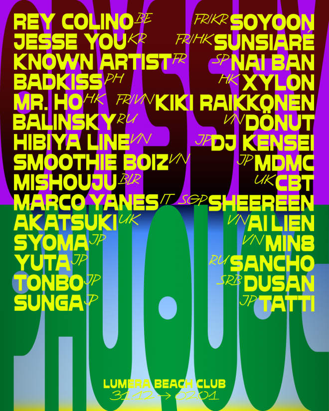 Spread across the event’s two stages (Bamboo and Garden), performing on the line-up include CBT, Yuta, Soyoon b2b Sunsiare, Known Artist, Dập Dìu, Jesse You, Alien b2b Marco Yanes, Mr. Ho, Hibiya Line, Sheereen, and more.