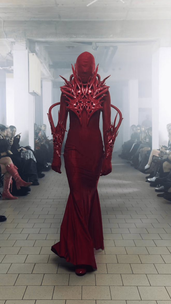Berlin-based designer Marlon Ferry presents a runway show featuring his Trinity collection, which explores the relationship between body, mind, and soul through sculptural, avant-garde silhouettes.