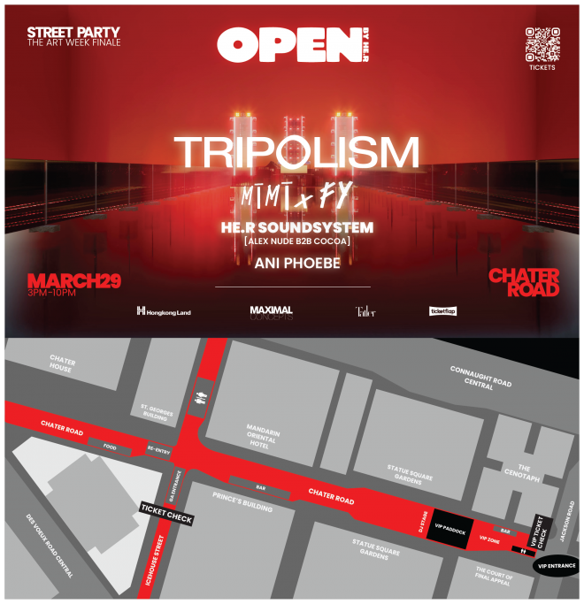 OPEN by HE.R will mark Tripolism’s debut performance in Asia, while also turning Chater Road into an open-air music festival for the first time.