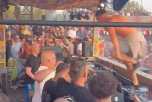 The German artist was performing a live set on the Hallucinarium Stage before a fan launched themselves across the decks