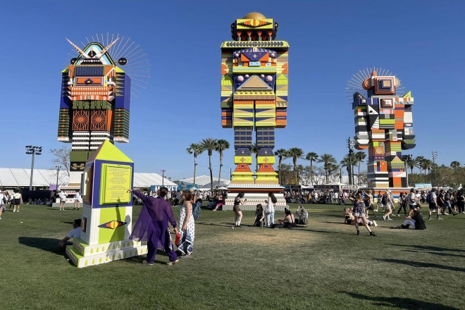 Việt Nam Coachella 2023 có sự xuất hiện của những con rô bốt khổng lồ từ studio sáng tạo Sài Gòn Reborn Design Sản phẩm sáng tạo của Kumkum Fernando giữa sa mạc là một trong những bất ngờ đặc biệt của Coachella năm nay